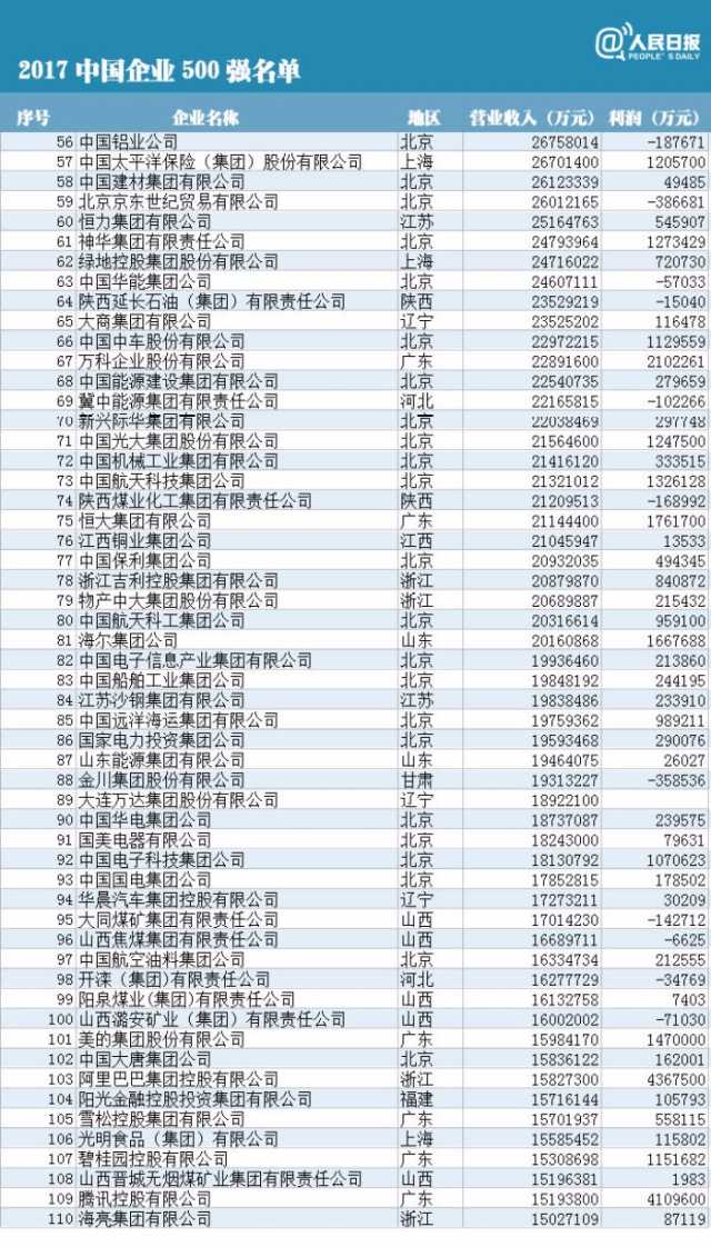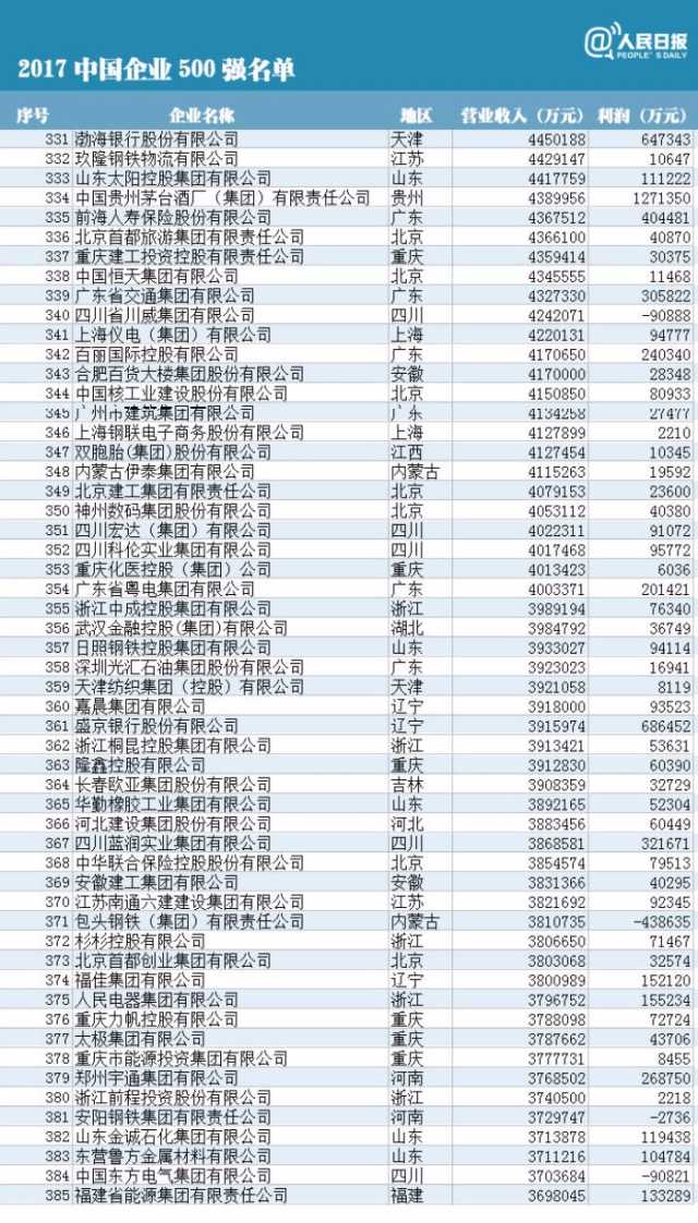 附中國(guó)企業(yè)500強(qiáng)榜單(制圖:人民日?qǐng)?bào)微博)