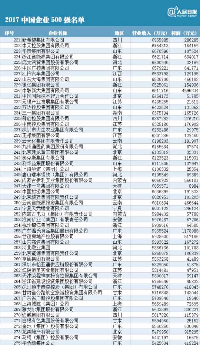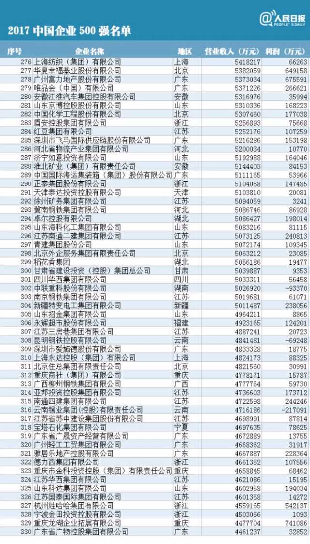 2017中國(guó)企業(yè)500強(qiáng)的入圍門(mén)檻為營(yíng)業(yè)收入283.11億元,達(dá)到歷史新高,較上年大幅提高了39.65億元,提高幅度是自2002年發(fā)布中國(guó)企業(yè)500強(qiáng)以來(lái)以來(lái)最大的。