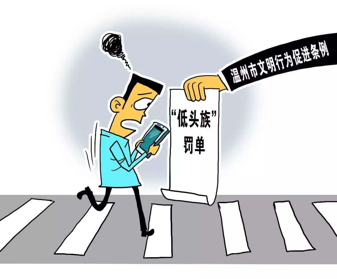 據(jù)報(bào)道,溫州市在2019年元旦開始實(shí)施的《溫州市文明行為促進(jìn)條例》,明確規(guī)定,對(duì)于行人通過路口或者橫穿道路時(shí)低頭看手機(jī)、嬉戲等行為要重點(diǎn)整治,違反該規(guī)定的會(huì)受到警告或十元罰款。